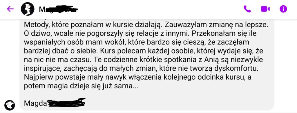 Rozpoczęłam powrót do siebie. Pomału odkrywałam książki, szkolenia, które dawały mi odpowiedź na pytanie – jak odbudować pewność siebie? Zagłębiałam się w mechanizmy rządzące życiem, aby stało się lżejsze i szczęśliwsze. Odkrywałam wzorce, niewspierające przekonania i zmieniałam je krok po kroku na nowe.